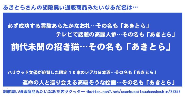 | 意味不明あだ名 | 『永久保存あきとら』『ペロリンあきとら』 |