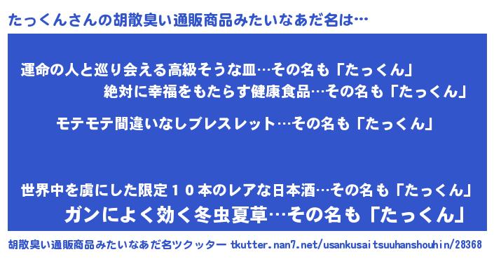 | ヒーロー風カッコイイあだ名 | 『スーパータックン』『究極戦士タックン』 |