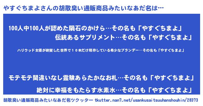 | ヘコむあだ名 | 『やすぐちまよ(苦笑)』『やすっぺ』 |