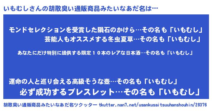 | 意味不明あだ名 | 『住所不定無職いもむし(41歳)』 |