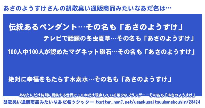 | ヘコむあだ名 | 『あさを』『あさのようすけ(苦笑)』 |