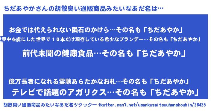 | ヒーロー風カッコイイあだ名 | 『ネオチダアヤカ』『愛の使者ちだあやか』 |