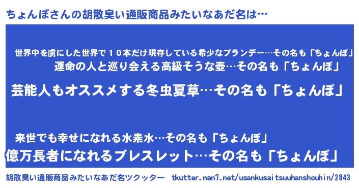 | 男性向けラノベタイトル風あだ名 | 『Re:ちょんぼから始める異世界生活』 |