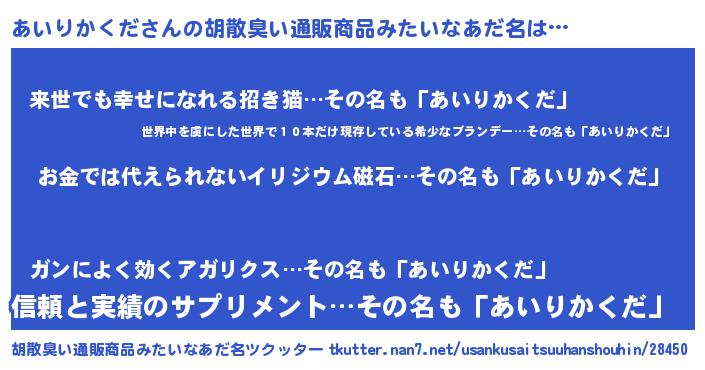 | ヒーロー風カッコイイあだ名 | 『友情の使者あいりかくだ』 |
