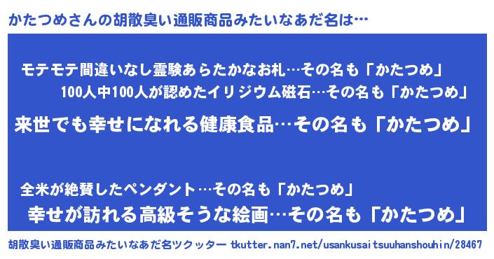 | ヘコむあだ名 | 『かたつめ(爆)』『かたっふぃ~』 |