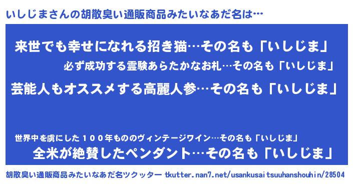 | 意味不明あだ名 | 『自称いしじま』『永久保存いしじま』 |