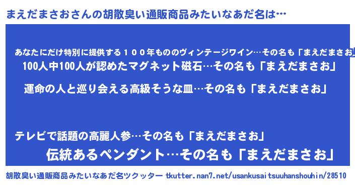 | 肩書あだ名 | 『まえだまさお国家主席』 |