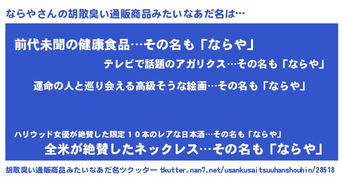 | 意味不明あだ名 | 『ならやフォーエバー』『永久保存ならや』 |