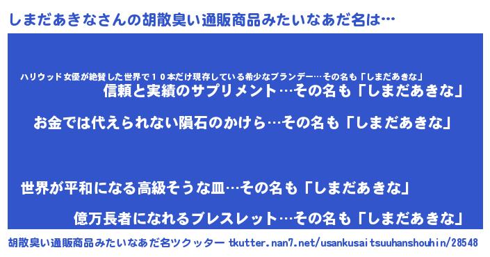 | 意味不明あだ名 | 『眠気覚ましガムしまだあきな味』 |