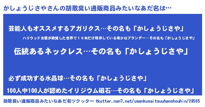 | 意味不明あだ名 | 『とにかく怪しいかしょうじさや』 |