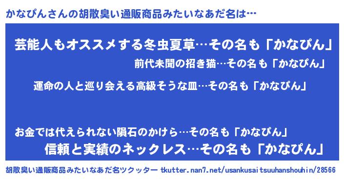 | 意味不明あだ名 | 『かなぴんフォーエバー』『自称かなぴん』 |