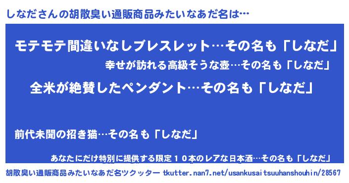 | ヘコむあだ名 | 『しなっちょ』『しなふぇ~』 |