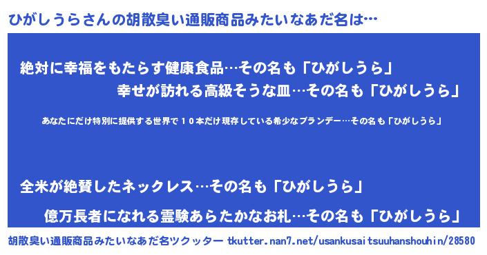 | 意味不明あだ名 | 『住所不定無職ひがしうら(71歳)』 |