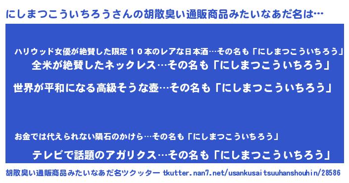 | 意味不明あだ名 | 『にしまつこういちろうフォーエバー』 |