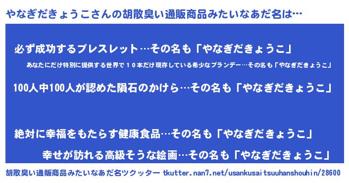 | 意味不明あだ名 | 『眠気覚ましガムやなぎだきょうこ味』 |