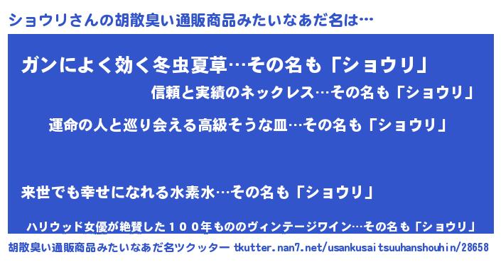 | 恥ずかしいあだ名 | 『ショっちょ』『ショウリデラックス』 |