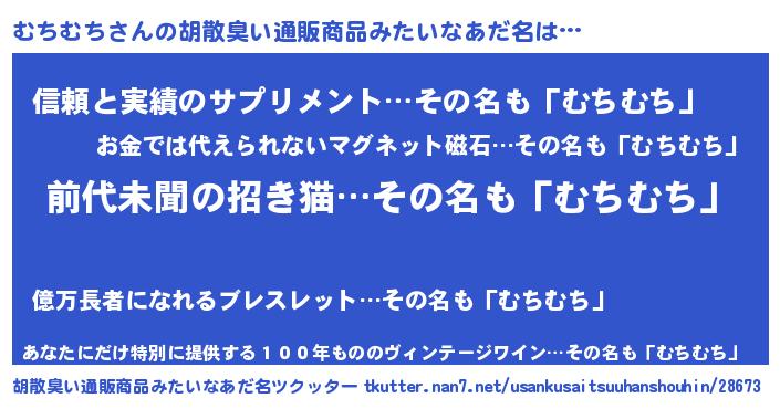 | ヘコむあだ名 | 『むちむち(小並感)』『むちを』 |