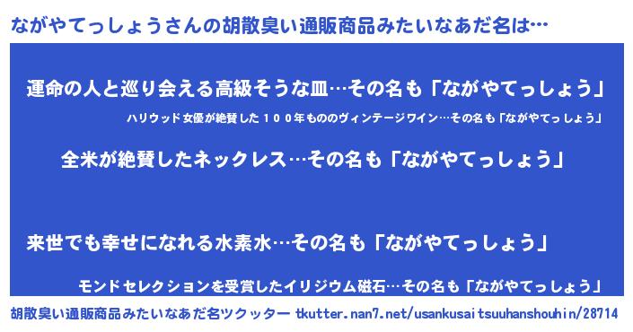 | 男性向けラノベタイトル風あだ名 | 『ながやてっしょうに滅ぼされるだけの簡単なお仕事です』 |