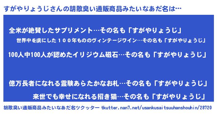 | ヒーロー風カッコイイあだ名 | 『正義の使者すがやりょうじ』 |