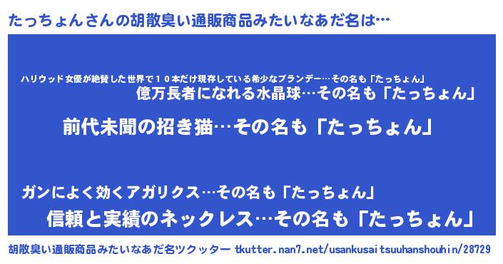 | 意味不明あだ名 | 『永久保存たっちょん』 |