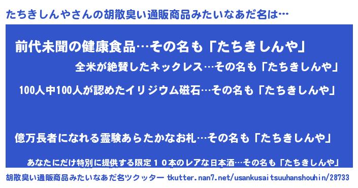 | ヘコむあだ名 | 『たちきしんや(笑)』『たちぷりん』 |
