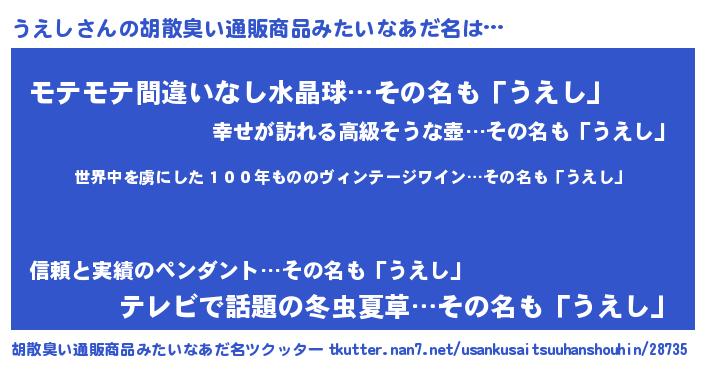 | ピコ太郎風あだ名 | 『ウコ三郎』『ピウ一郎』『ウエ二郎』 |