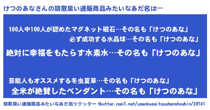| ヘコむあだ名 | 『けつのあな(苦笑)』『けつを』 |