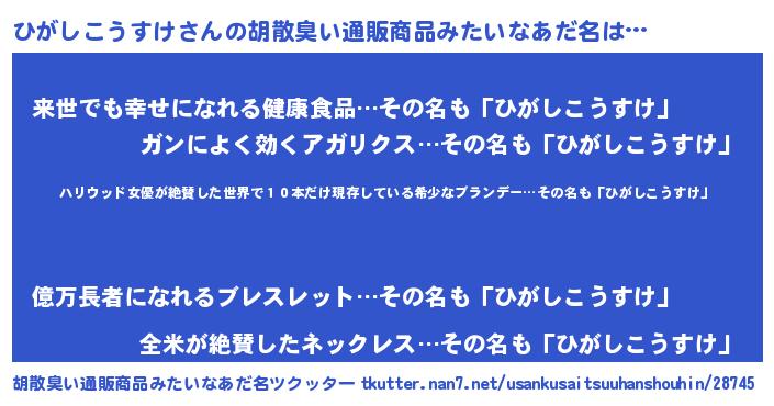 | ヘコむあだ名 | 『ひがしこうすけ(震え声)』『ひがっぺ』 |