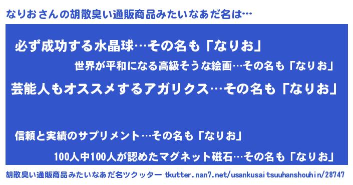 | 意味不明あだ名 | 『自称なりお』『ペロリンなりお』 |