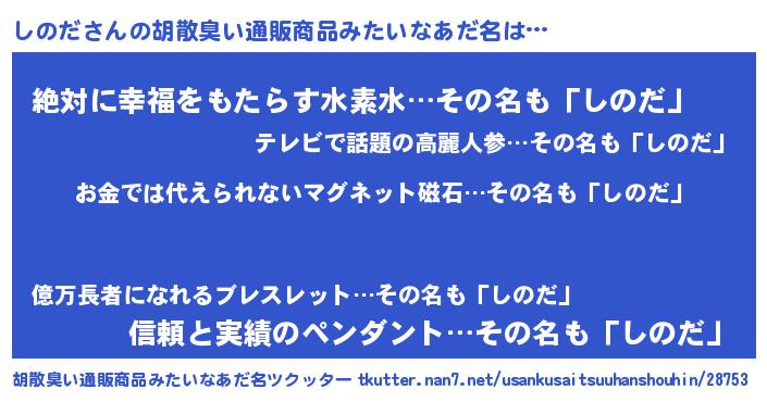 | ヘコむあだ名 | 『しのだ(笑)』『しのっちょ』『豆乳』 |
