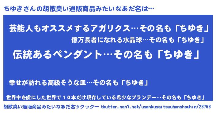 | 意味不明あだ名 | 『とにかく怪しいちゆき』『自称ちゆき』 |