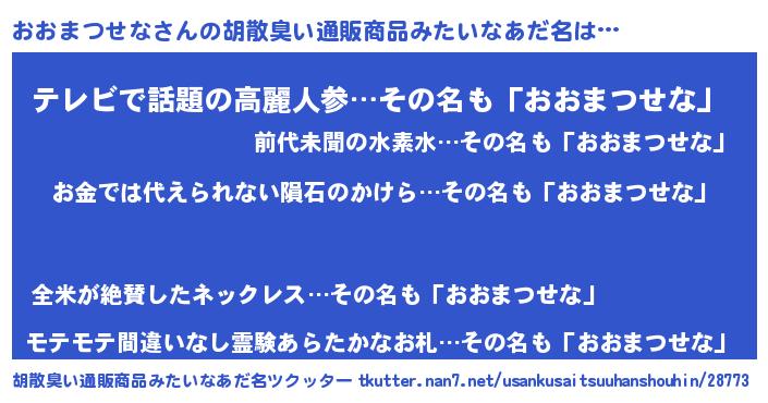 | ヒーロー風カッコイイあだ名 | 『慈愛の使者おおまつせな』 |