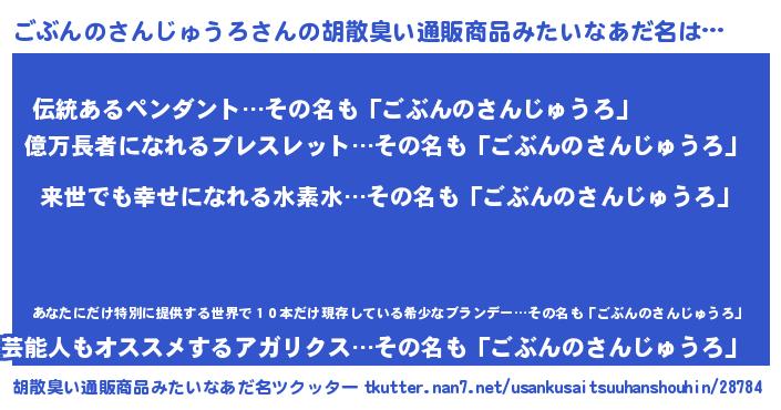 | 意味不明あだ名 | 『永久保存ごぶんのさんじゅうろ』 |