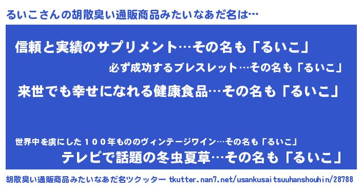 | 意味不明あだ名 | 『永久保存るいこ』『自称るいこ』 |