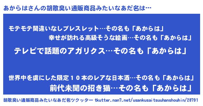 | ヘコむあだ名 | 『あかふぇ~』『あからは(小並感)』 |