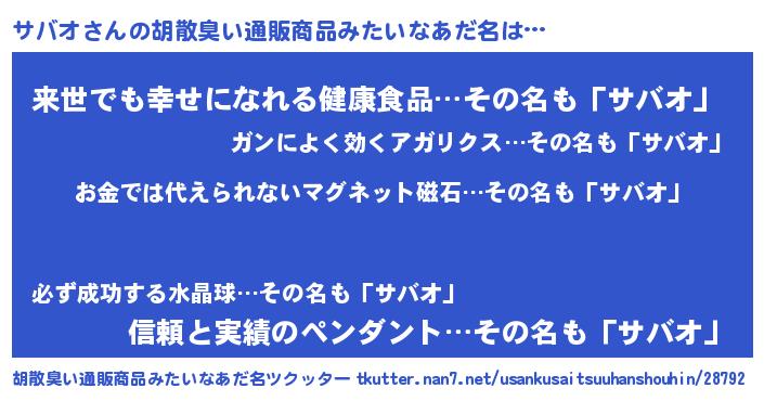 | ヒーロー風カッコイイあだ名 | 『愛の使者サバオ』『ネオサバオ』 |