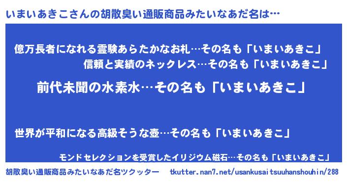 | ヘコむあだ名 | 『いまいあきこ(遠い目)』『いまもー』 |