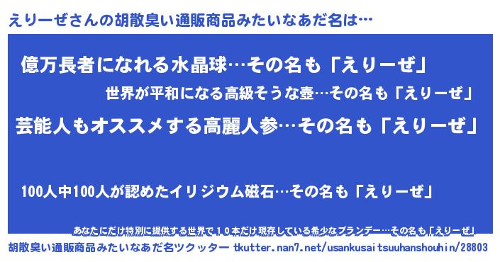 | 意味不明あだ名 | 『自称えりーぜ』『ペロリンえりーぜ』 |