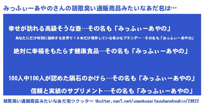 | 意味不明あだ名 | 『永久保存みっふぃーあやの』 |