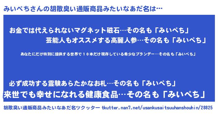 | 意味不明あだ名 | 『つくし科みいぺち属』『自称みいぺち』 |