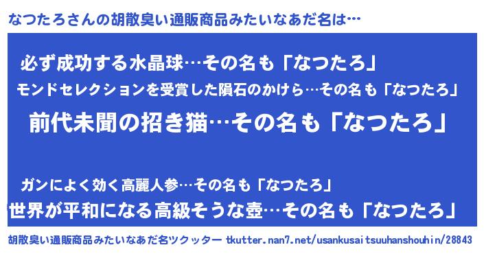 | ヒーロー風カッコイイあだ名 | 『ネオナツタロ』『スーパーナツタロ』 |