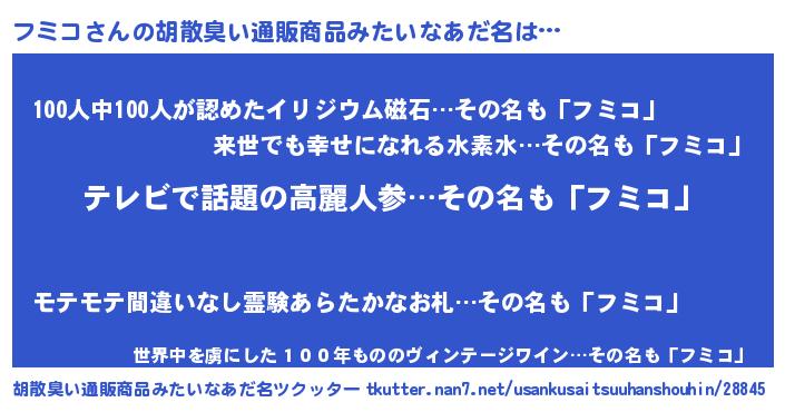 | 意味不明あだ名 | 『自称フミコ』『眠気覚ましガムフミコ味』 |