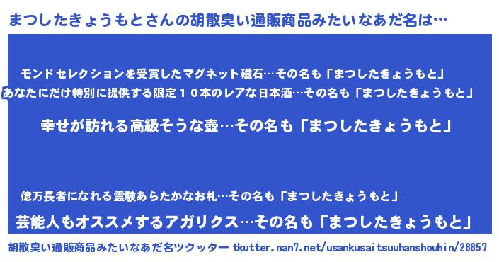 | 意味不明あだ名 | 『まつしたきょうもとフォーエバー』 |