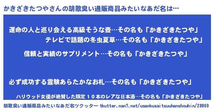 | 意味不明あだ名 | 『とにかく怪しいかきざきたつや』 |