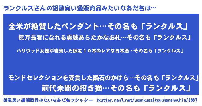 | 意味不明あだ名 | 『住所不定無職ランクルス(53歳)』 |