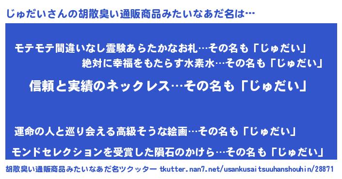 | 意味不明あだ名 | 『とにかく怪しいじゅだい』 |
