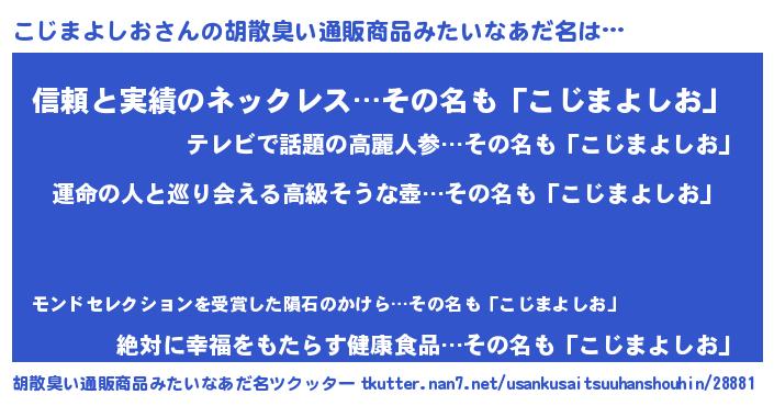 | ファンタジー風あだ名 | 『エターナルコジマヨシオー』 |
