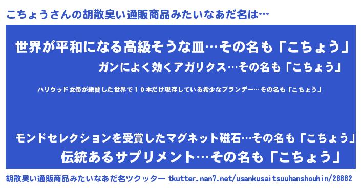 | 意味不明あだ名 | 『住所不定無職こちょう(93歳)』 |