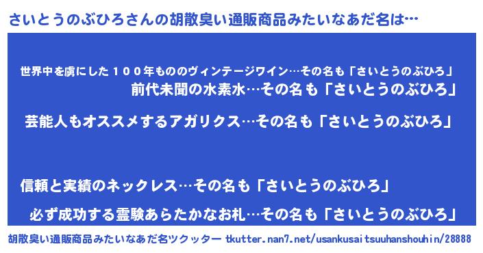 | 意味不明あだ名 | 『自称さいとうのぶひろ』 |