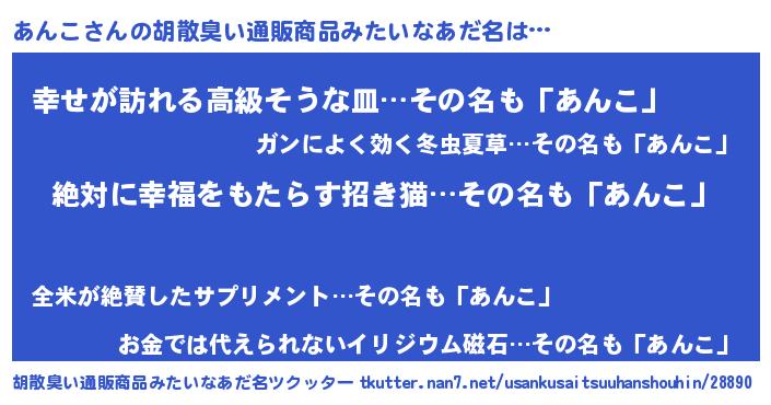 | ヘコむあだ名 | 『あんこ(笑)』『つくし』『あん太郎』 |